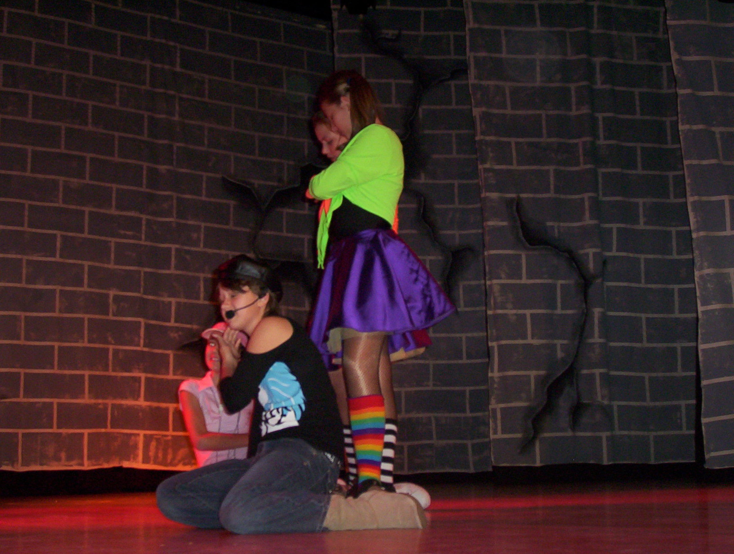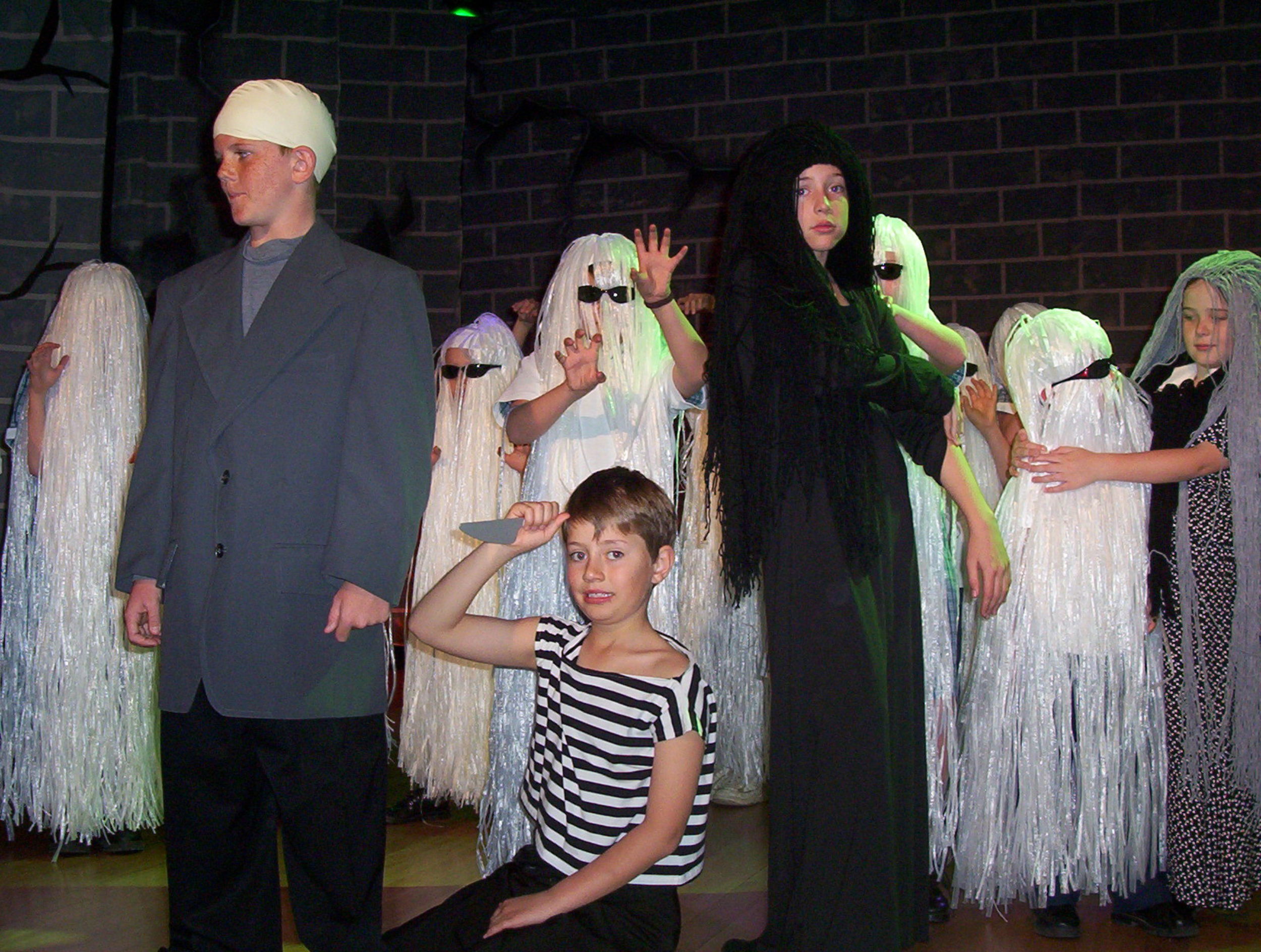 Terror Tower is about a group of Primary students who get lost while on a school excursion in an old, vacant and run down tower. While trying to find their way out of the tower the students encounter a variety of strange and unusual beings including ghosts (5P), monsters (4A), the Addams Family (4M), horror movie characters (5J), moving pieces of fabric (7T), Time Warp characters (6PH), skeletons (6N), ad other thrilling and scary ghouls (7T).